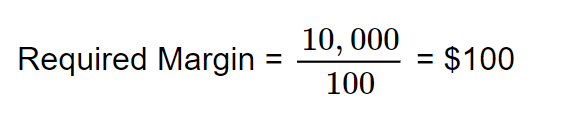 with a Desired Position Value of $10,000 and a Leverage Ratio of 100:1, the required margin would be: