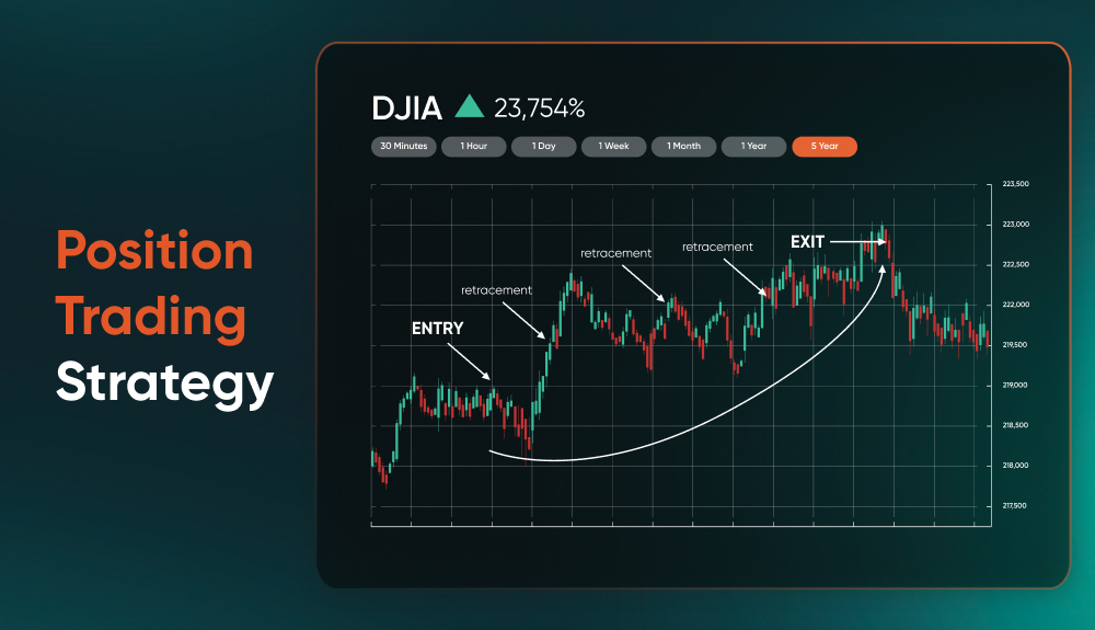 Position trading strategy involves holding a trade position over a relatively long period of time, from several weeks to months. This is based on the expectation that the index held will appreciate in value, especially during a temporary downturn in which an index is reading below average values.