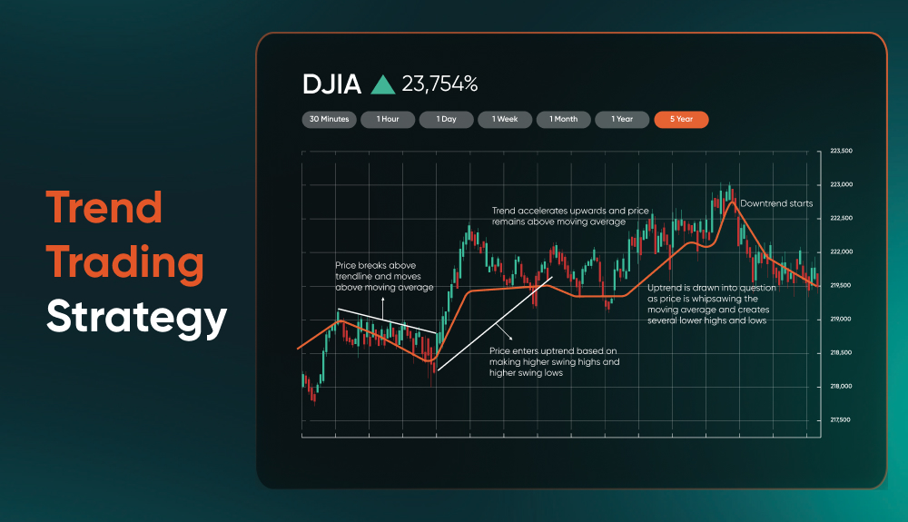 Trend trading strategy can be beneficial as it helps identify buying and selling opportunities, improves decision-making, and minimises risks. It can also provide a deep understanding of the market, as there are various data points – financial statements, economic indicators, and market data – and several methods used in analysing trends.