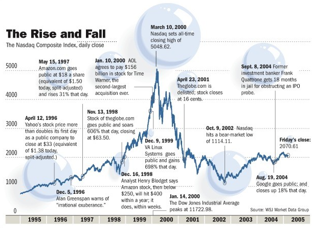 Figure 1: The rise and fall of the Nasdaq Composite Index during the dot com bubble (Source: Global Entrepreneurship Institute)