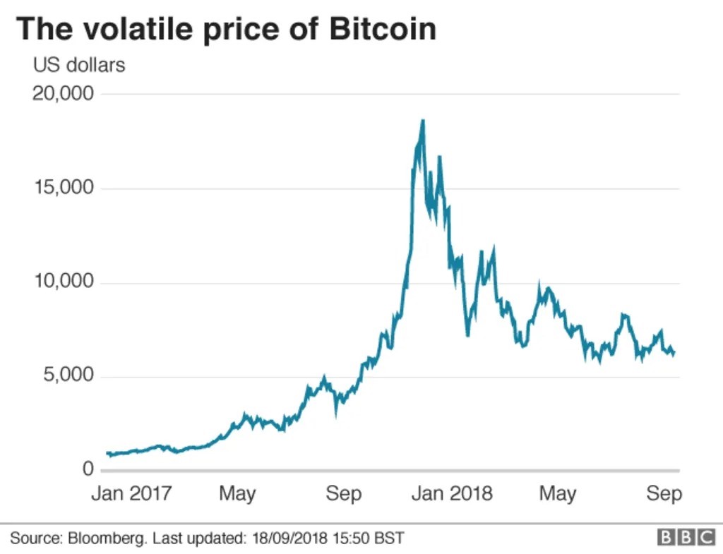 Figure 2: A chart showing Bitcoin prices from 2017 – 2018 (Source: Bloomberg)