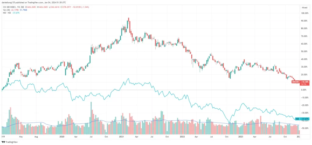 Chart 3: CSI 300 vs Hang Seng Index over 5 years (https://www.tradingview.com/x/1PjtwQPk/