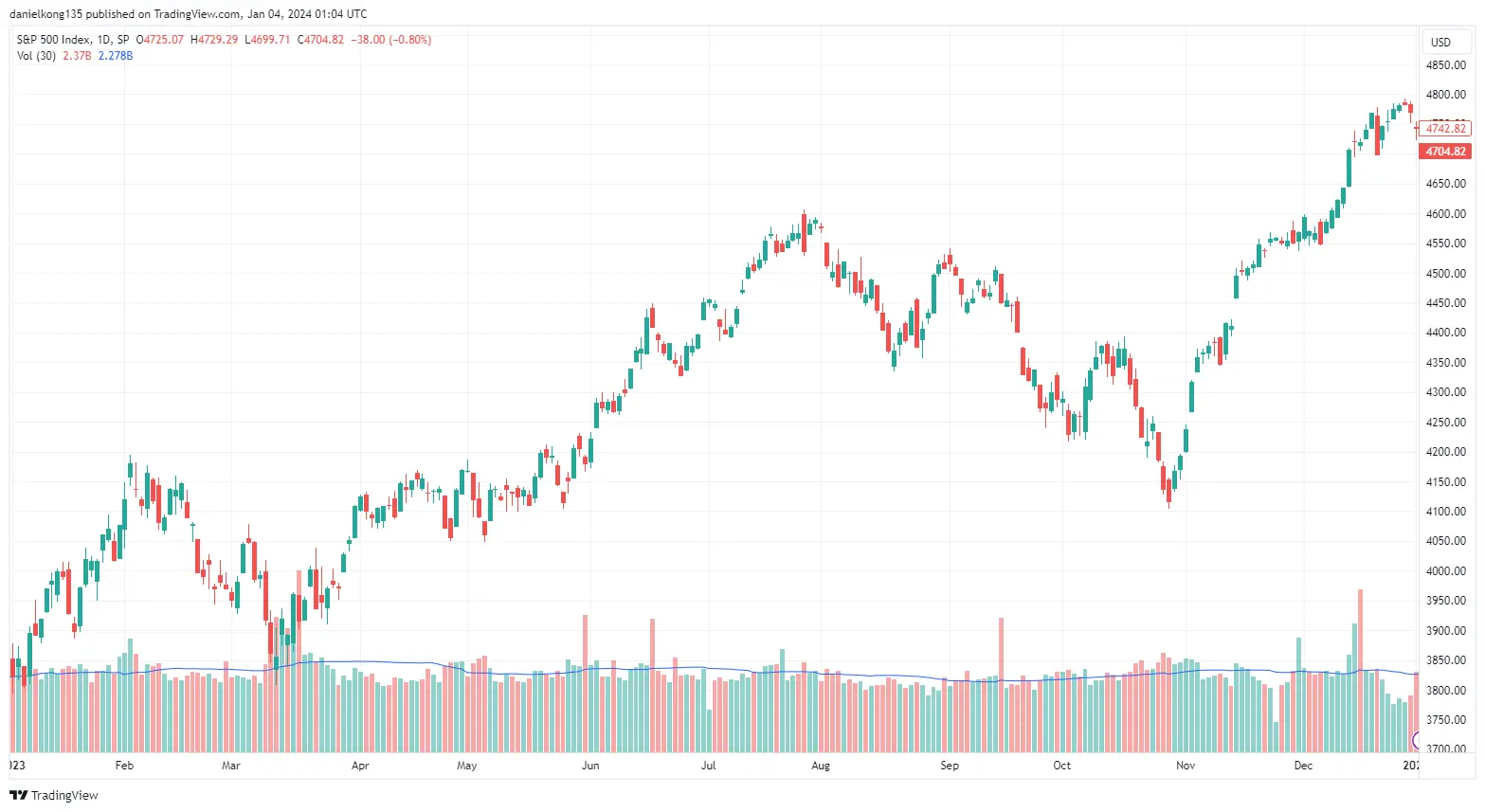 Chart 1: S&P 500 Index chart movement for 2023 (https://www.tradingview.com/x/gtVz2QSo/