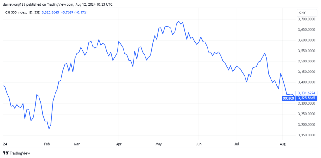 Chart 5: CSI 300 Index from 1 January 2024 – 9 August 2024 (https://www.tradingview.com/x/AeMf1Ea8/