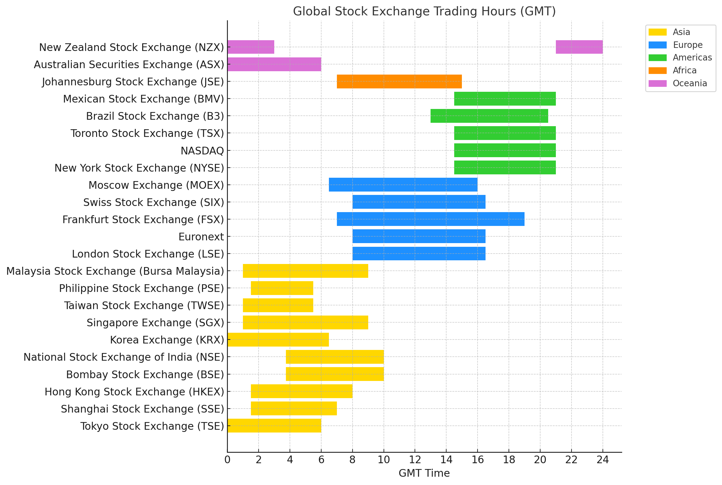 Here’s a quick overview of the trading hours of some major exchanges: