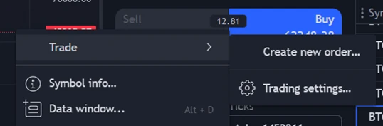 - Right-clicking on the charting area lets you open trades through a menu as shown below: