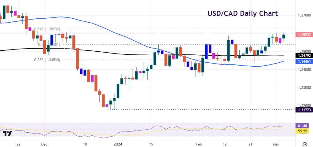 The USD’s mild drop last Friday formed the third leg of a bearish “evening star” pattern on the daily USD/CAD chart. But this has yet to play out with prices supported by the 50% level of the Q4 sell-off at 1.3538. Solid resistance sits at 1.36, though a break above here could develop quite quickly after recent consolidation.