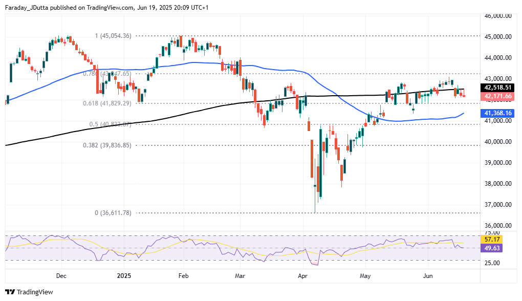 The Dow Jones has underperformed the broader S&P 500 benchmark and the Nasdaq since the April Liberation Day lows. Tech has led the gainers, and the Dow is now struggling under the 200-day SMA at 42,518. This has capped the upside more or less through May and June with next support at the major Fib retrace level (61.8%) of this year’s decline at 41,829. Lose this and the 50-day SMA is below at 41,368. The initial upside target for bulls is last weeks’ top at 43,115.
