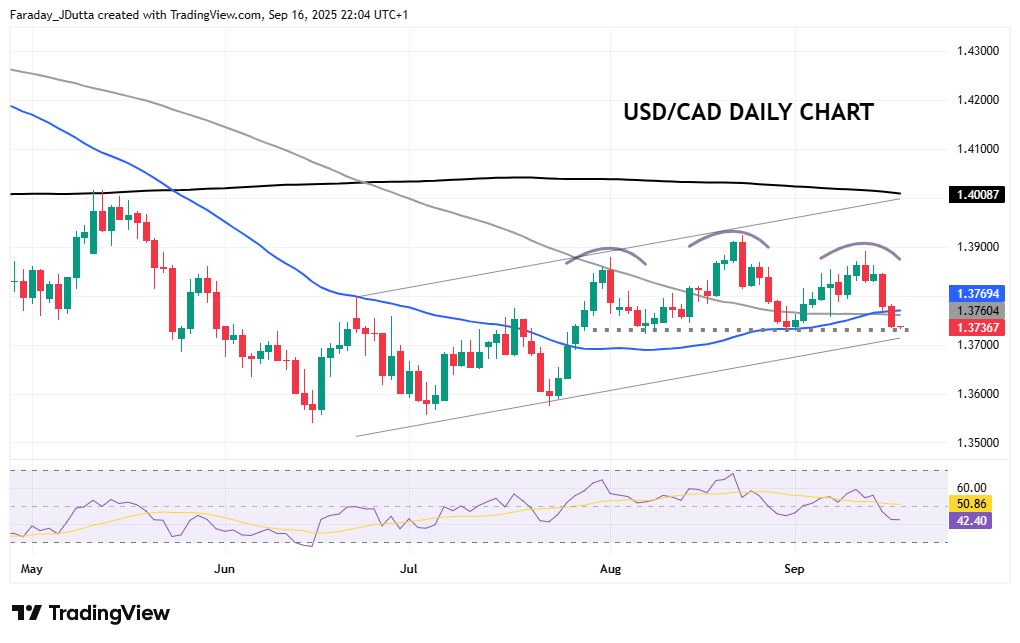 Prices are currently trading around the 50-day and 100-day SMAs at 1.3761/68 though downward momentum has picked up this week after the bearish reversal candlestick last Thursday . Risks are potentially more tilted to a hold by the BoC and more aggressive easing by the FOMC. That would likely cause a sell-off in the major. There’s a potential bearish head and shoulders pattern nearly complete, with the trigger around 1.3730. That connects the early and late August lows in USDCAD. A measured move could mean a downside break towards the low 1.35s. A flipside surprise and a mildly more hawkish Fed which sees quarterly cuts over back-to-back-to-back would push the major higher.