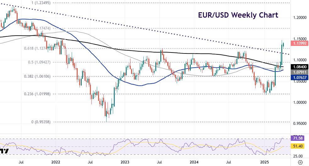 AUD enjoyed a sixth straight day of buying as it continued to rebound. There is strong resistance just below 0.64. CAD strength was present both before and after the BoC’s decision to hold rates. Expectations going into the event were pretty much split between a hold and 25bps rate cut, with BoC Governor Macklem noting the decision to hold came as they want to gain more information about the path of US tariffs and the impact they will have. Rates are exactly in the middle of the neutral range. Support is at 1.3850/60.