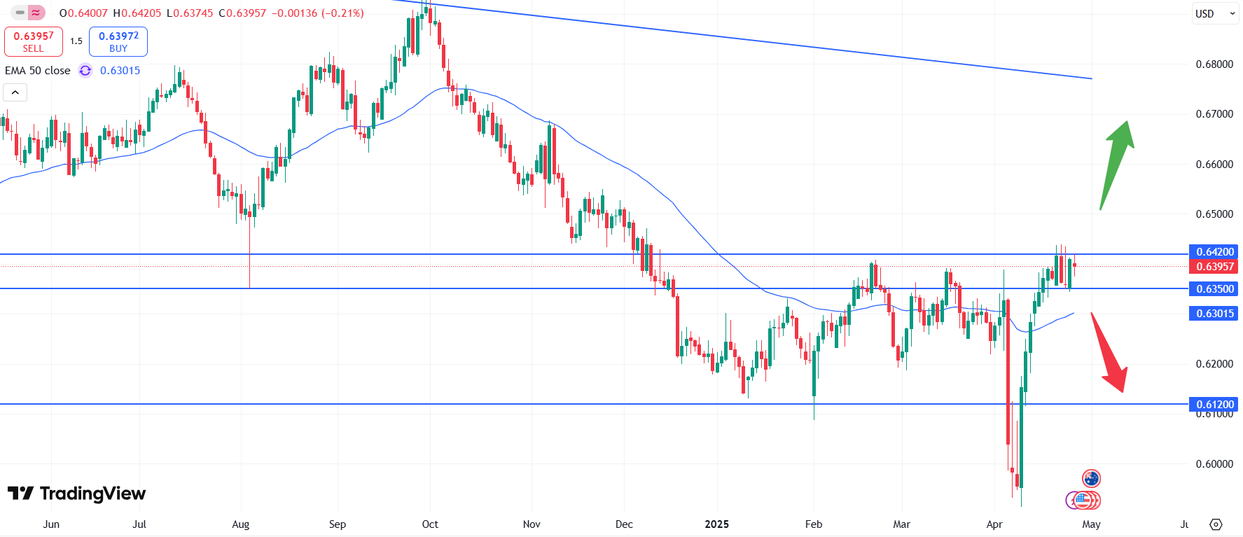 As the daily chart above shows, the price remains capped in a sideways trading range. A breakout of this zone should be expected. Monthly charts might suggest, that the upside could continue as the market bounced off the strong support zone at 0.6120. Yet, a retracement in particular towards the end of April might also occur after the strong push higher in April. The index form Australia will be released on the 30th of April, 2025 at 02:30 CET.