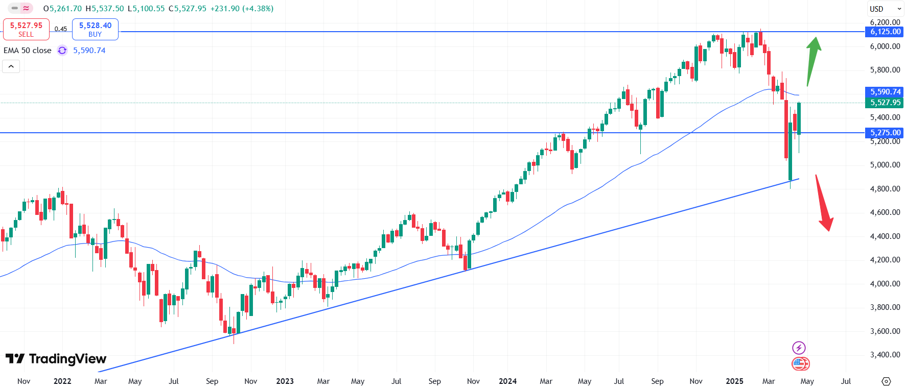 The S&P 500 index might continue to move higher. The recent bear market might come to an end at least for now. Lower rates should in general boost confidence and investors might start to apply more positive risk sentiment. A break of the 50- moving average currently hovering around the 5,590 area could hence increase more buying momentum. The index form the US will be released on the 30th of April, 2025 at 15:00 CET.