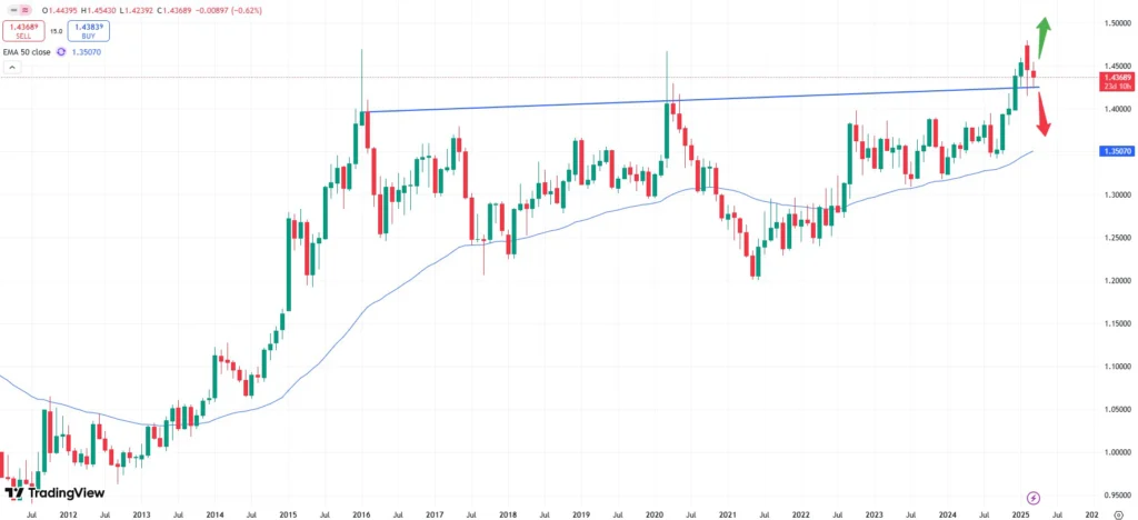 Since the price has broken above the 1.4300 resistance zone recently, more upside momentum might occur. A potentially safer entry to buy this might be above the recent high points of 1.4600. The upside potential might continue from there. A cut in rates might help the currency pair further as the CAD might lose steam. The decision will happen on Wednesday, 12th March at 14:45 CET.