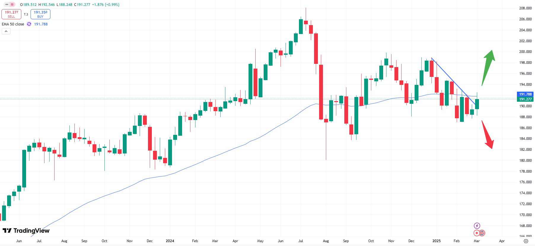 A break of the rising 50- moving average trendline, which currently sits at 191.85 might indicate further upside momentum. Also the falling trendline had been broken, which might itself confirm further upside. If on the other hand the market will fall back below the 190.00 support zone, more downside momentum might be seen. The data will be released on Thursday, 13th March at 13:30 CET.
