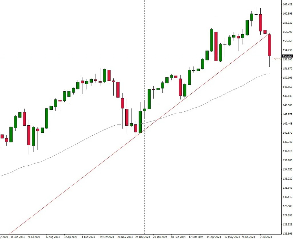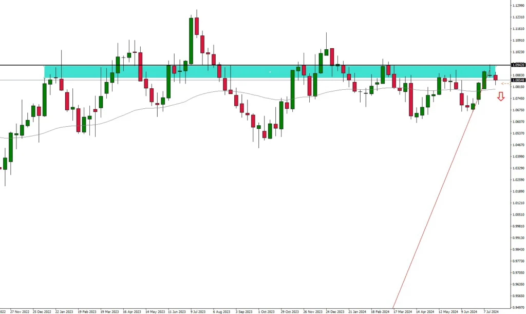 As can be seen from the weekly chart, there could now be downside potential. Better-than-expected data could help the Dollar. Overall, the focus is now shifting back to economic data as inflation data continues to weaken. The figure will be published on Wednesday, 31 July at 14:15 CET.