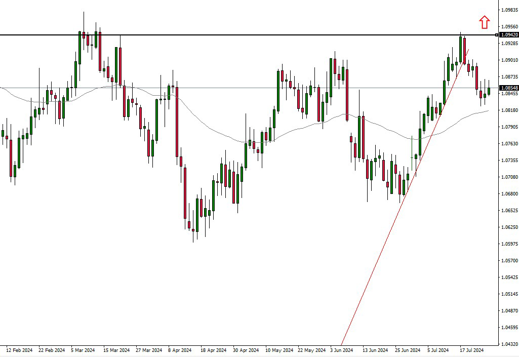 The resistance area could then be broken and the market could trend upwards. The interest rate decision will take place on Wednesday, 31 July at 20:00 CET.