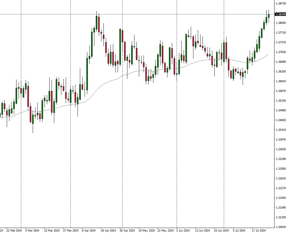 According to the daily chart above, there could also be a downward setback at the current price range. The market has already risen sharply. The zone around the 1.3850 area should therefore be monitored closely. The figure will be published on 02 August at 14:30 CET.