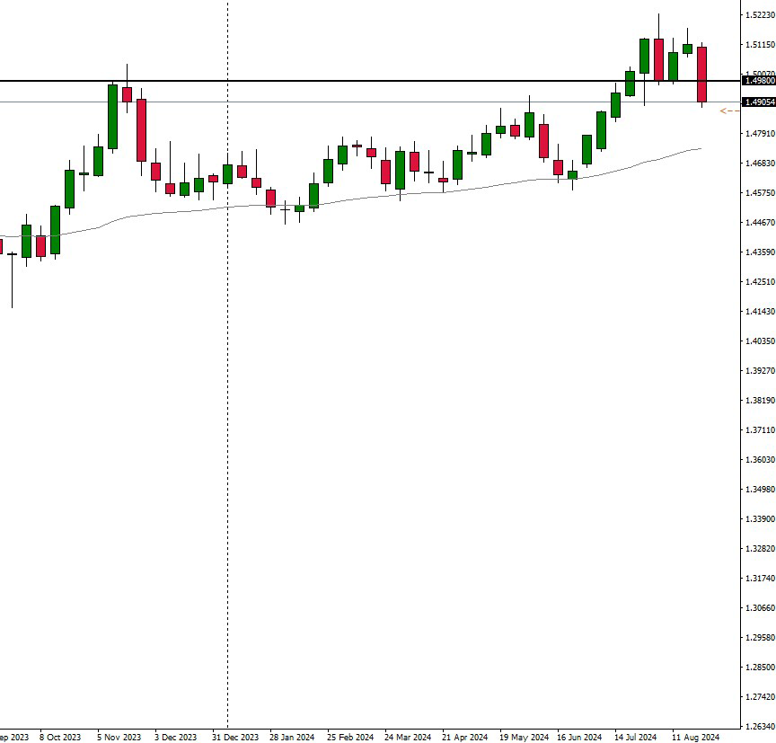 A look at the EURCAD shows that the EUR is also currently in defeat. The break of the zone at 1.4980 could now unleash further downside potential. The data will be published on Friday 06 September at 14:30 CET.