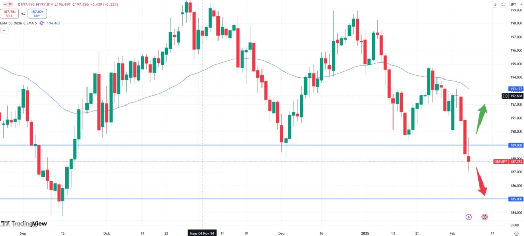 The daily chart above shows a clear break of the important support zone at 189.00. Prices could now move toward the next support level at 185.00. Recent data was rather disappointing; however, a better-than-expected result might lead to rising prices. Any retracement higher towards the aforementioned resistance area could then be taken as a selling opportunity. Only a break above the psychological 190.00 area might unleash fresh upside potential. The data will be published on Thursday, the 13th of February at 08:00 CET.